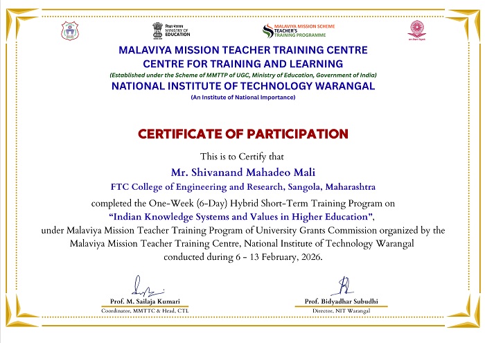 Mr. Dudhal Kenchappa Manageni has participated and completed AICTE training & learning FDP